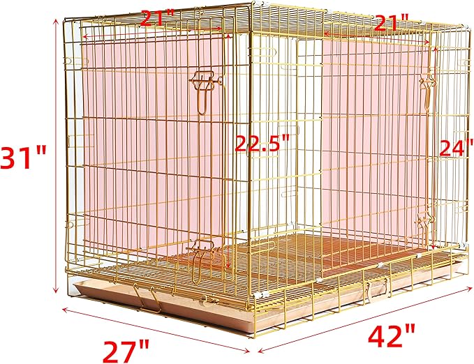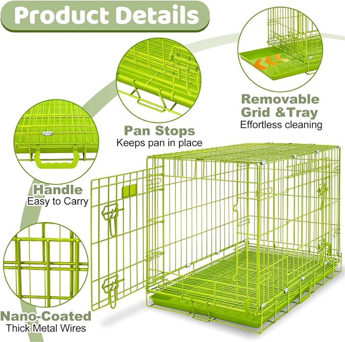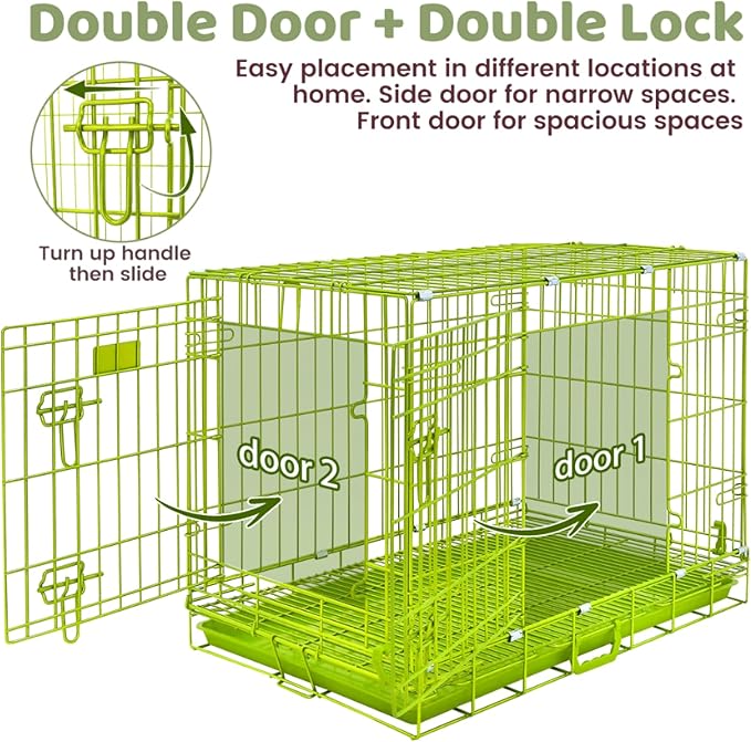 Homey Pet Large Dog Crate, Collapsible Dog Cage Medium Sized Dog, Nano-Coating Metal Wire XL Big Dog Kennel Indoor with Removable Floor Grid and Tray, Double Doors, GOLD42+GREEN30 Bundle