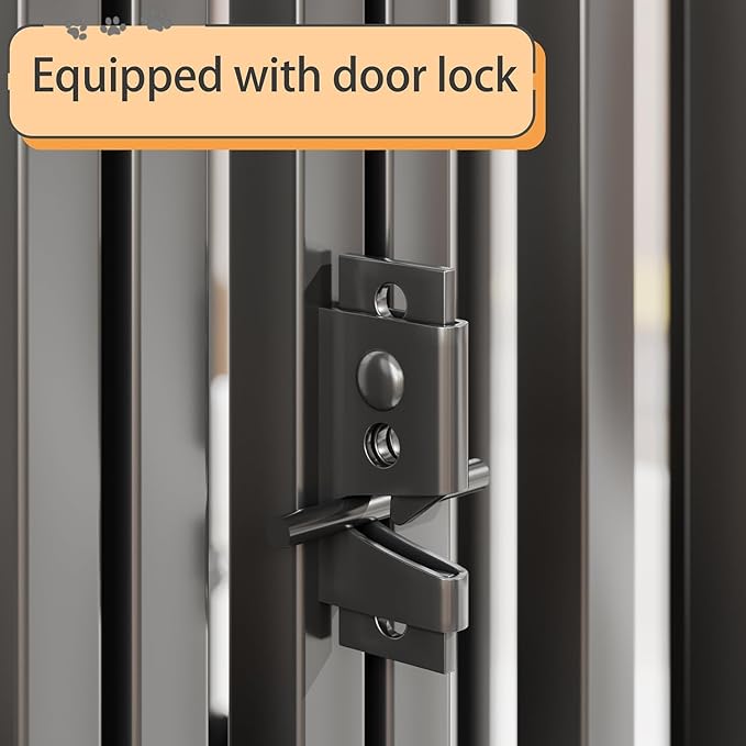 - Secure Top Cover & Flexible Door Placement: The Dog Crate boasts a secure top cover that effectively prevents your pet from escaping. The sturdy design of the cover ensures that even the most determined escape artists are kept safely contained within the crate. Additionally, the crate offers the flexibility to install the door at any desired position, allowing you to customize the access point based on your home's layout or your pet's specific needs.